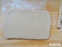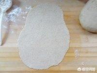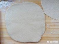 6.将面饼再次擀成越0.8cm厚的面饼。