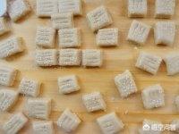 第三步,表面撒上白芝麻,将其擀成厚度约为0.8厘米的长方形片,然后将其切成差不多2厘米*3厘米的小方块,在每个小方块上用刀在表面划三刀,注意别划破了;