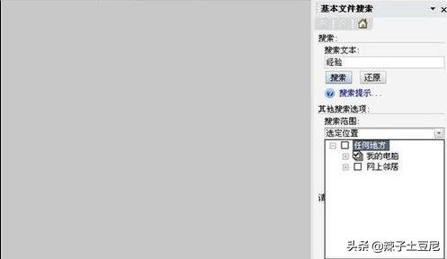步骤二: 单击“文件搜索”,在word文档的右边出现“基本文件搜索”。
